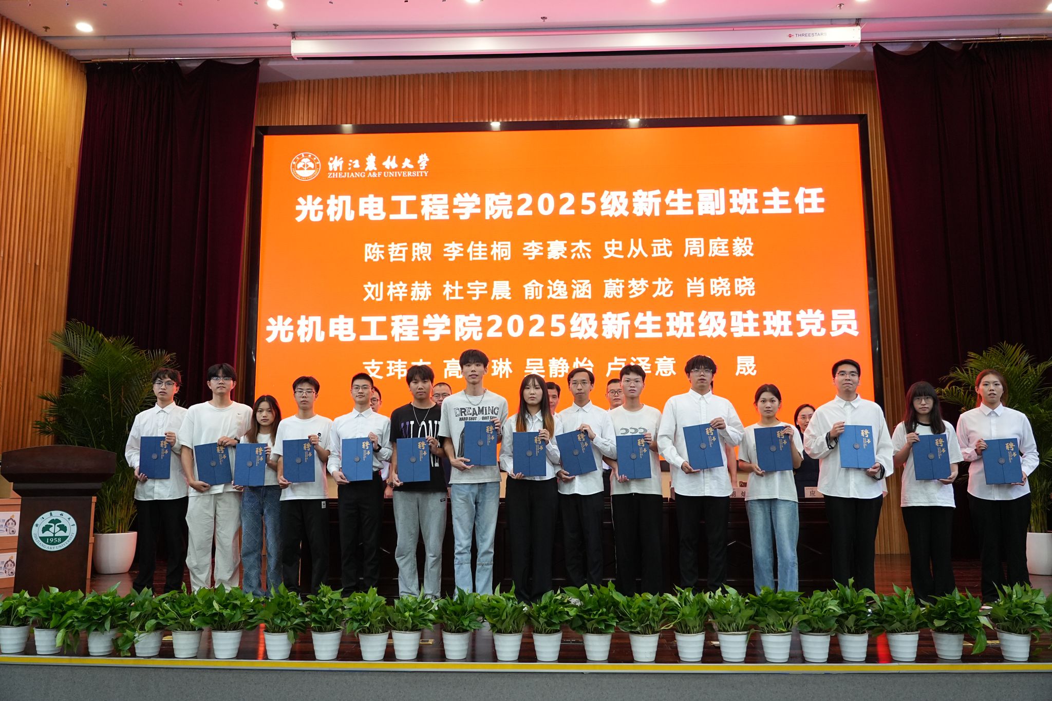 在校生代表机械221班朱杭灿同学分享了自己的学习与成长经历,鼓励新生勇于探索、不断进取。新生代表光机电研251班杨明旭同学表达了对大学生活的期待与决心,承诺将珍惜时光、努力拼搏。