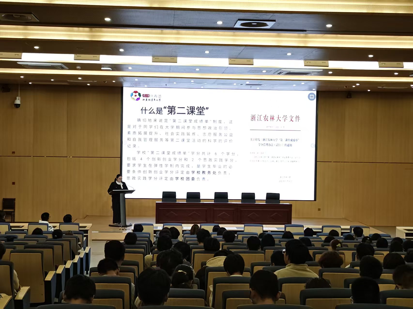 孙俊杰、何肖慧分别向新生们阐述了“第二课堂”在大学生成长中的重要意义,并详细介绍了学校推行的“第二课堂成绩单”制度,明确毕业所需的“第二课堂”学分标准,解读了学分预警机制,并重点警示了通过不正当手段获取积分的严重后果,为新生们划定了行为规范的红线。