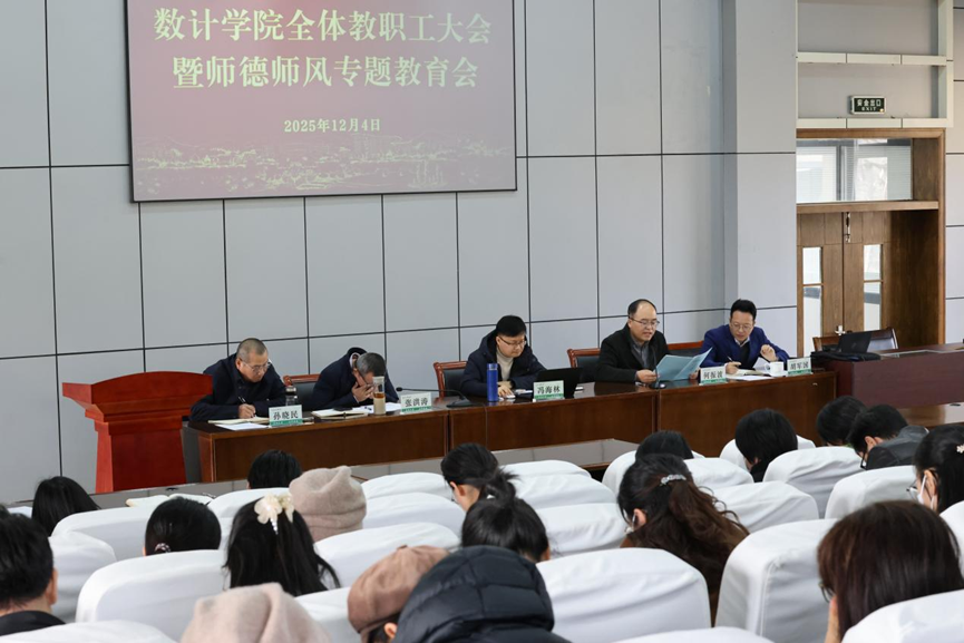 12月4日,数计学院在学11-301召开全体教职工大会暨师德师风专题教育会。学院领导班子成员、全体教职工参加会议,会议由学院党委书记何振波主持。