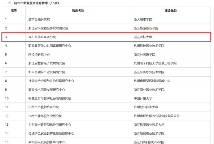 近日,杭州市哲学社会科学工作办公室正式公布了杭州市首批新型智库名单,beat365平台唯一官网文法学院(外国语学院)牵头申报的“乡村文化共富研究院”成功入选。
