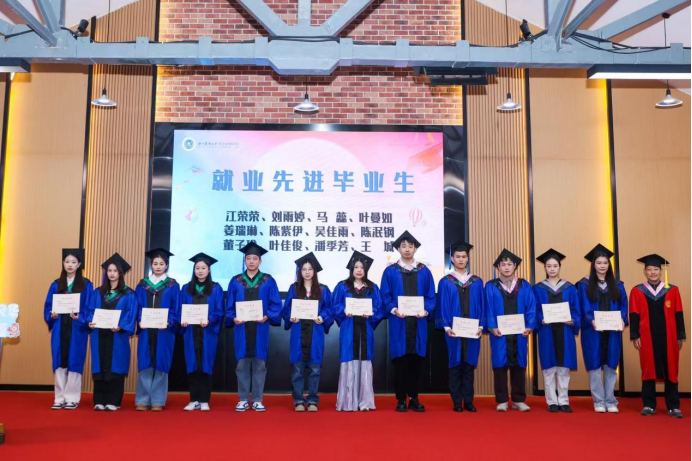 陈劲松为就业先进毕业生颁发荣誉证书,并希望全体毕业生树立正确的择业观、就业观,将个人理想融入国家发展、社会需求,以务实心态深耕岗位、勇担使命。学院将持续关注毕业生的就业状况与职业发展,做到就业服务永不“断线”,呼吁毕业生与学院同心协力,书写就业创业精彩答卷,为学院发展与社会进步贡献青春力量。