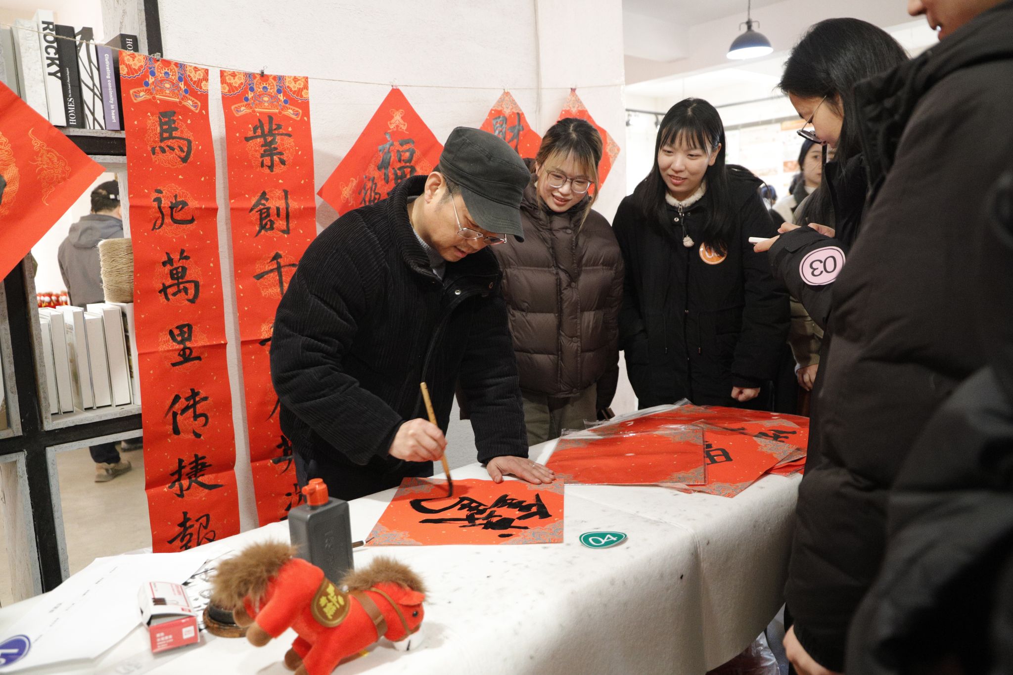 会后,学院还组织开展了“幸福‘艺’家人,喜迎马年新春”主题团建活动。现场气氛热烈、暖意融融,教职工通过抽签组成十支队伍,在各项趣味项目中全情投入、协力同行。“欢乐投壶”“飞镖投准”考验专注、“赶马入厩”“两圈到底”彰显协作、“幸运沙包”欢乐无穷、“圈圈套果”妙趣横生,欢声笑语不绝于耳,生动展现了艺术学院教职工团结活泼、和谐奋进的精神风貌。活动中,教师代表挥毫泼墨,创作出一幅幅寓意吉祥的马年书法作品,将专业特色与佳节氛围巧妙相融,更为现场增添了浓厚的艺术气息与温情暖意。本次团建有效凝聚了团队合力,提升了归属意识,为新一年学院各项事业的发展注入了满满活力与蓬勃朝气。