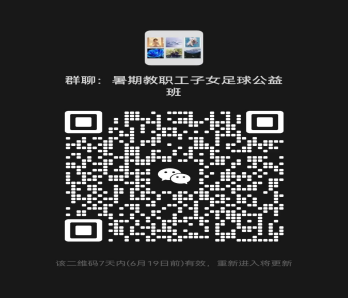 请6月20日前扫码入群(教职工子女暑期足球公益班微信群二维码附后)。入群后填报孩子姓名、年龄、家长联系方式等信息。最终参加培训名单将在群里公布。