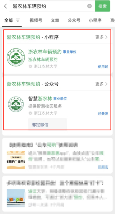 微信搜“浙农林车辆预约”;或公众号搜“智慧浙农林”-微应用-入校申请。