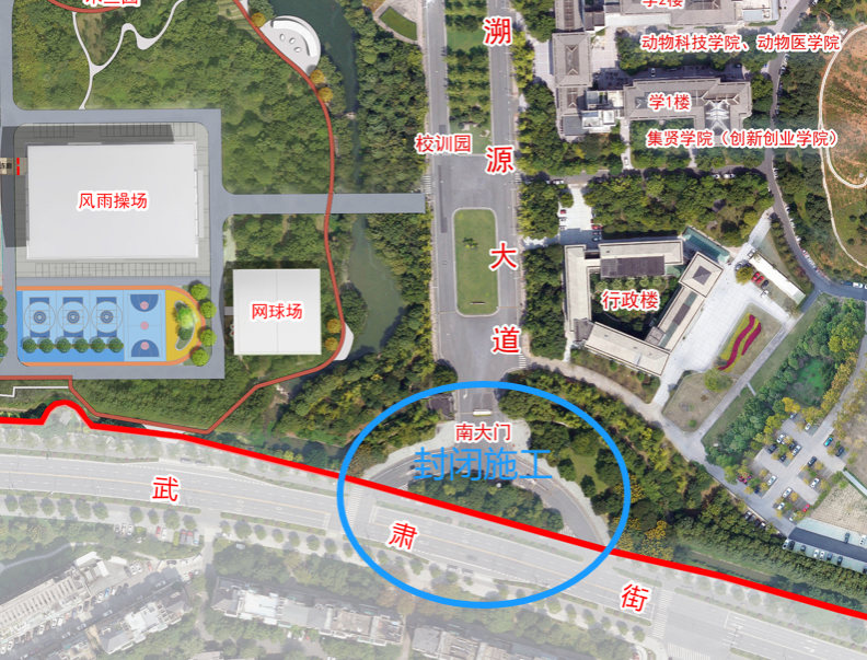 因学校暑期工程施工安排,对东湖校区南大门实施封闭施工,现将有关事项公告如下: