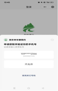 2.获取微信授权:在获取授权的同时,用户需要勾选《浙农林人员车辆入校须知》。