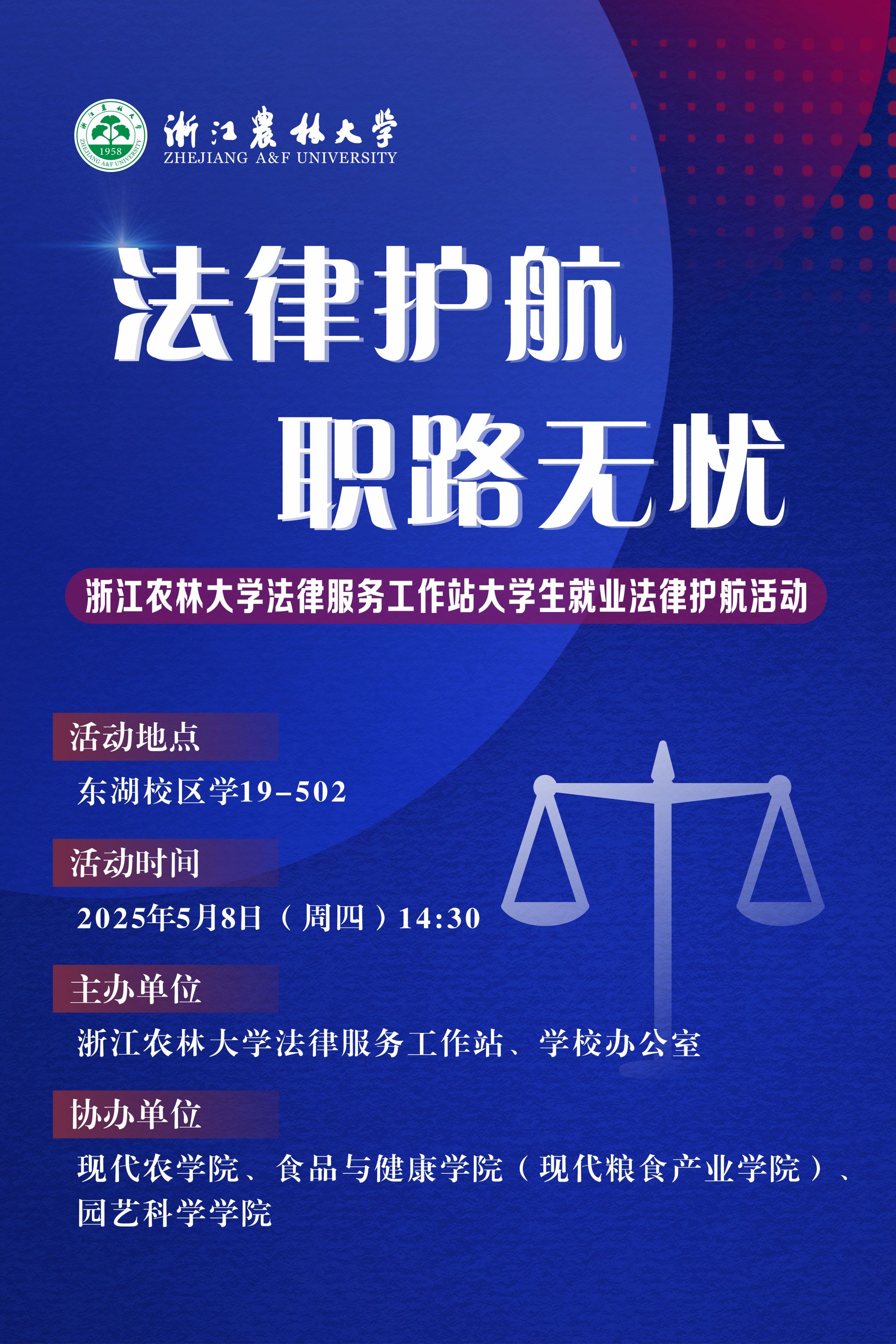 为深化法治校园建设,增强beat365官网学生就业法律风险防范意识,帮助大学生系统掌握劳动合同、权益保障及创业合规等法律知识,提升在求职应聘、实习实践及创新创业中的法律应用能力,切实维护大学生就业择业过程中的合法权益,现决定开展大学生就业法律护航活动,具体安排如下: