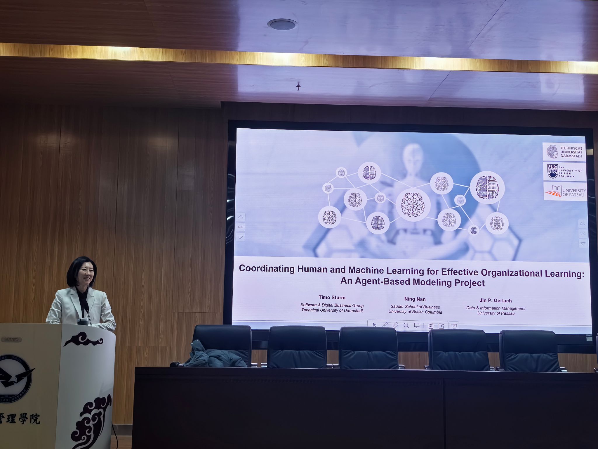 (通讯员 王飞)12月12日上午,加拿大英属哥伦比亚大学商学院副教授Ning Nan老师莅临我院,在经管学院一楼报告厅为学院师生们带来了题为《Coordinating Human and Machine Learning for Effective Organizational Learning: An Agent-Based Modeling Project》的精彩主题讲座。本次活动由朱镇教授主持,吸引了众多师生前来聆听。