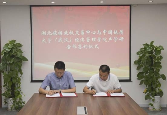 8月18号上午,湖北碳排放权交易中心与vwin德赢ac米兰官方网签署产学研合作协议暨举行产学研基地揭牌仪式。湖北碳排放权交易中心总经理刘汉武与vwin德赢ac米兰官方网副院长(主持工作)杨树旺签署协议,双方一致同意在互惠互利、共同发展的基础上建立全面的产学研合作关系,共建低碳经管精英人才联合培养战略关系,形成产业与专业相互促进、产学双赢的良好局面。
