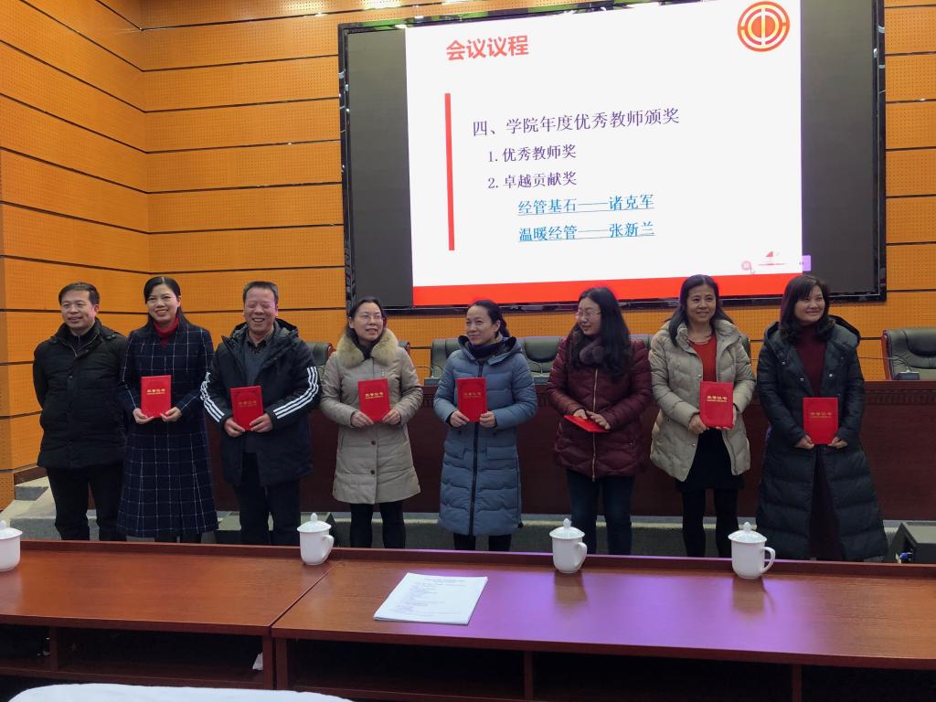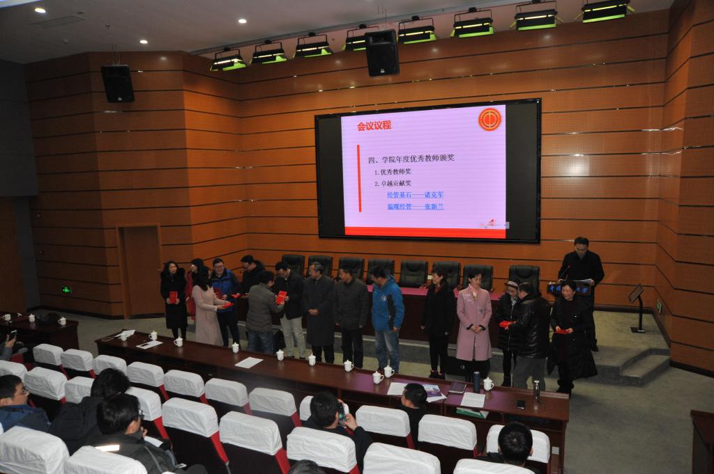 大会上表彰了“学校年度考核优秀个人”“学院年度优秀共产党员”“先进管理工作者”“院工会积极分子”等四类优秀教师个人,并系统回顾了诸克军和张新兰两位教授在教书育人与科学研究中取得的成就,授予两位荣休的教师“卓越贡献奖”。