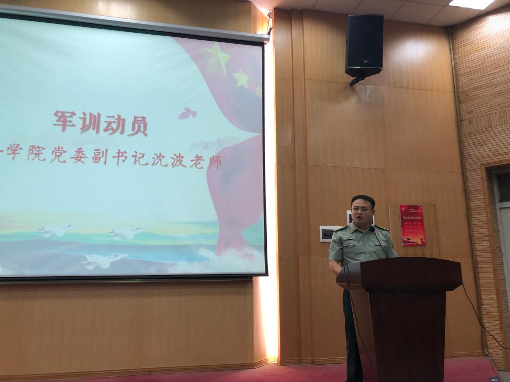 2019年9月5日19:30,伴随着振奋人心的征兵入伍宣传片,vwin德赢ac米兰官方网2019级新生军训动员大会暨参军入伍大学生欢送会在教三楼109正式开幕,这代表着一年一度的新生军训正式开始,也象征着我院为国防事业输送的新鲜血液——新一批3名参军入伍大学生即将正式进入军旅生活。本次大会由田昆老师主持,保卫处副处长单红峰、学院党委副书记沈波出席,2019级全体辅导员老师及新生参加。