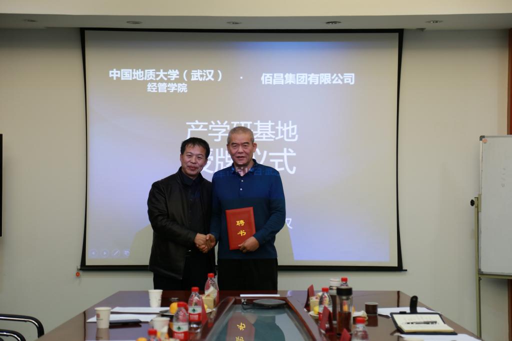 12月18日下午,由院党委书记杨昌锐带队,杨树旺院长、郭锐副院长、校友合作与教育基金管理处处长徐岩、原副校长杨昌明教授等一行七人,参访了佰昌集团有限公司,签订了产学研基地合作协议,并向我院杰出校友、佰昌集团董事长柯翔颁发了客座教授的聘书。