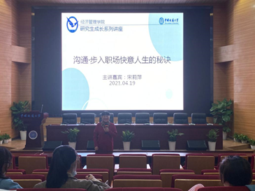 [通讯员 王简辞 刘伟 ] 2021年4月19日晚上7点到9点,聚焦研究生成长与发展,vwin德赢ac米兰官方网“研究生成长”系列讲座在我校未来城校区经管大楼二楼报告厅正式开讲。本次讲座的主题是:“沟通:步入职场快意人生的秘诀”。本次讲座邀请到了该院宋莉萍副教授主讲,吸引了不少研究生同学参加了此次讲座。