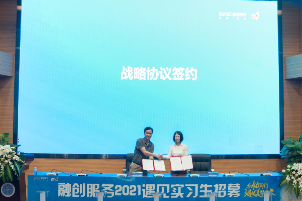 为进一步深化“三全育人”,探索产学研协同创新的新模式,打造院企合作新样板,5月12日下午,我院与融创服务集团华中大区在学院二楼报告厅举行战略合作启动仪式暨“遇见实习生”招聘宣讲会。校党委副书记成金华,院党委书记杨昌锐、院长杨树旺、副院长肖建忠、经济系教授朱冬元,融创服务集团华中大区总经理何嘉、副总经理张健伟、人力资源部负责人马莉洁、非住运营管理部负责人李秋香,江南业务单元负责人朱江,以及师生代表参加此次仪式。院党委副书记李少杰主持仪式。
