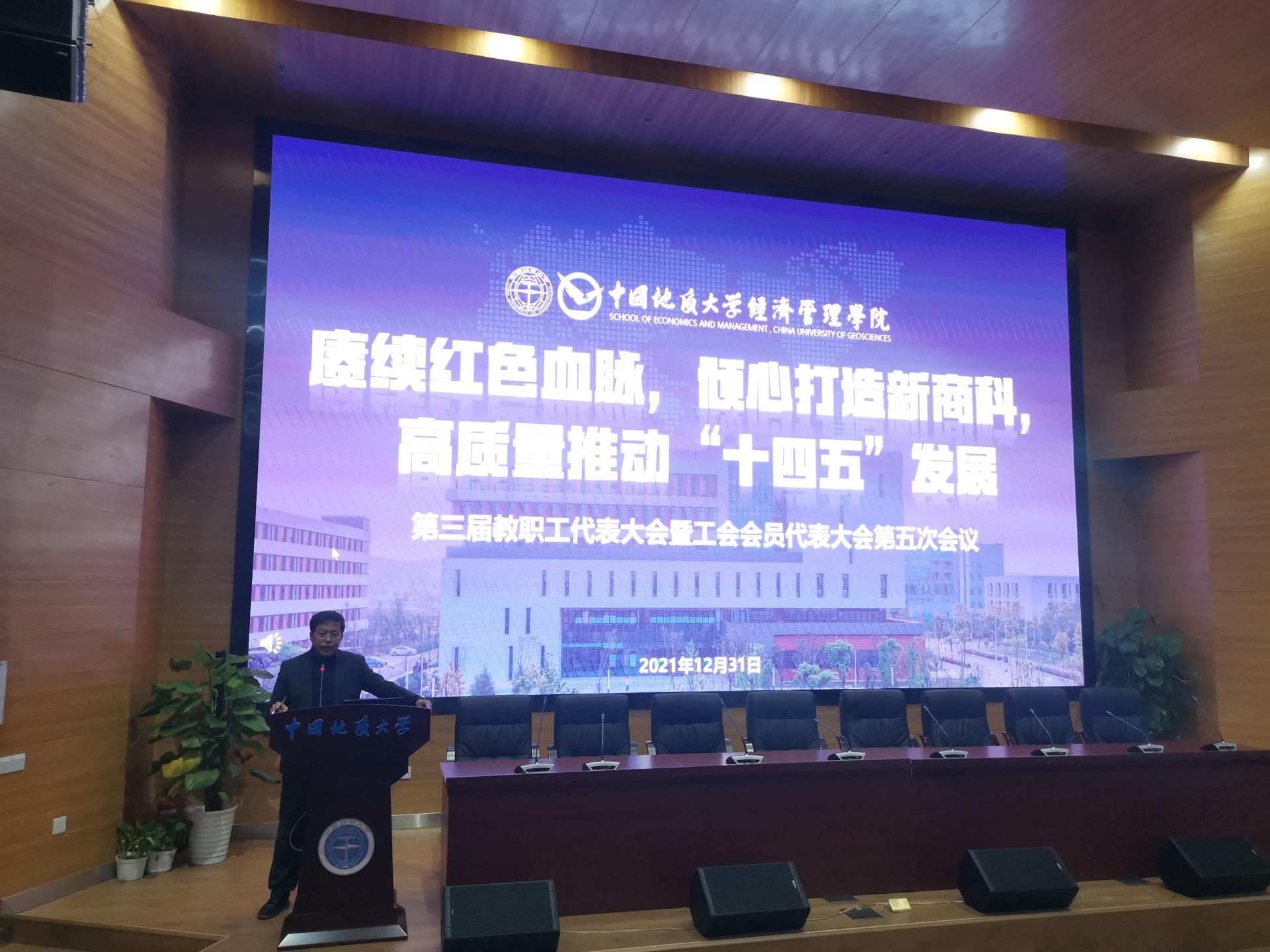 (通讯员倪琳,照片提供努尔夏提) 2021年12月31日上午,vwin德赢ac米兰官方网在未来城科教七楼二层报告厅隆重召开了第三届教职工代表大会暨工会会员代表大会第五次会议。本次大会的主题是“赓续红色血脉,倾心打造新商科,高质量推动“十四五”发展”。