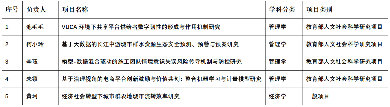 教育部社科司公布了2022年度教育部人文社会科学研究一般项目及教育部哲学社会科学研究后期资助立项结果,我院共获批5个项目,其中4项获人文社科项目资助,1项获哲学社会科学研究后期资助。