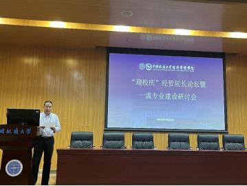 中南财经政法大学工商管理学院副院长胡川教授作了题为《抓创新、促融合—中南大工商学院国家级一流本科专业建设的探索与实践》的报告。该学院8个专业国家级一流全覆盖。指出,始终坚持本科教育中心地位,从思想观念、政策激励、条件保障等不同方面切实把“以本为本”落到实处。学校和学院资源优先服务于本科教育,教师的精力优先聚焦于本科教育,学院的核心竞争力和教学质量优先在本科教育显现。以社会需求为导向,不断优化专业结构布局,开设“数智化创新管理”微专业。持续深化课堂教学改革,“以赛促教,以赛促改”,重视青年教学奖比赛,思政课教学比赛,提升教室教学能力。创新本科培养模式,开展“五位一体培养”。学院开启了“以国际认证为抓手全面提升学院国际化水平”的“国际化2.0”,建设 “立足中南,面向世界”的“经法管融通的一流商学院”,以国际认证为抓手,对标专业认证标准,继续实施专业内涵建设,不断提升专业建设和人才培养质量,做好迎接国家级一流本科专业建设点验收的准备工作。