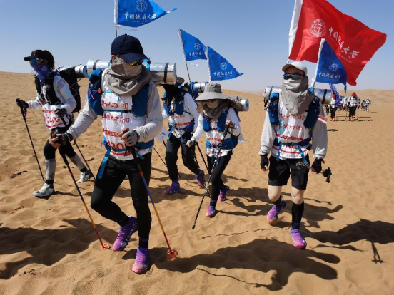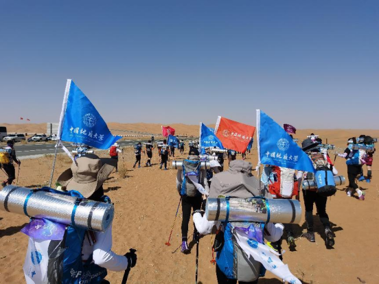 三天两夜腾格里,不屈不挠地大人。5月2日,第十一届亚太地区商学院沙漠挑战赛(亚沙赛)在阿拉善腾格里沙漠完美收官。我院沙11星辰大海战队在专硕教育中心张嘉琦老师、李馨宁老师的带领下,共有7名参赛队员(其中4名B队队员、3名C队队员)。每一位队员秉承地大人不畏艰险,精诚团结的攀登精神,历经强风扬沙,克服重重苦难,以胸怀“无限的希望”,用“火焰般的热情”,在这里发掘自己的潜能、超越自我,完成一次历时3天超越70公里的沙漠徒步挑战赛,全部参赛队员圆满完赛!