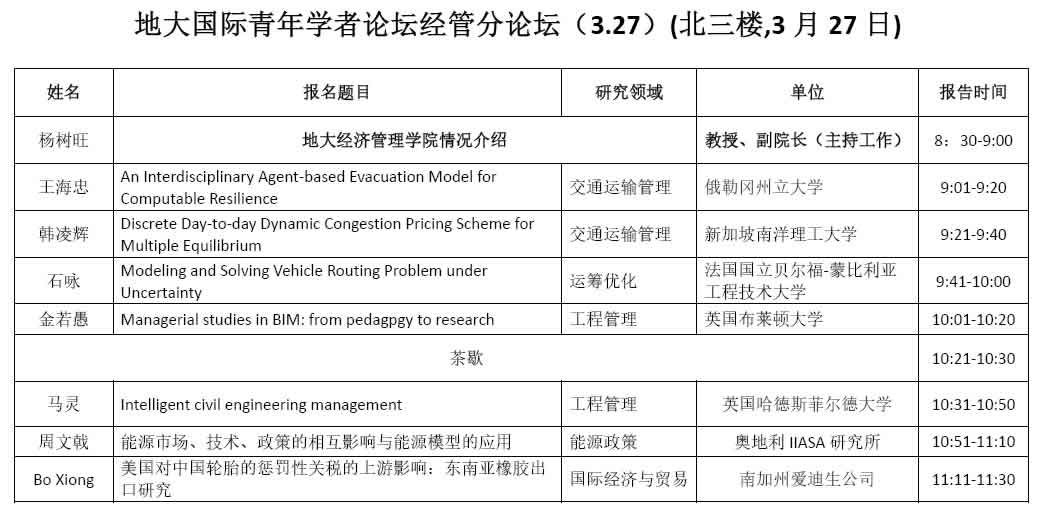 vwin德赢ac米兰官方网(武汉)第二届“国际青年学者地大论坛”经管分论坛