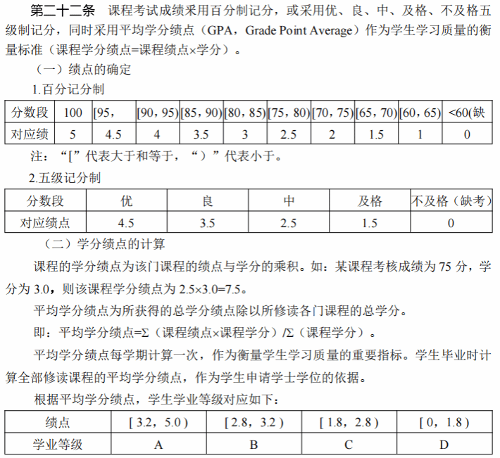 附件:平均学分绩点的计算方法(学生手册本科课程修读管理办法第二十二条)
