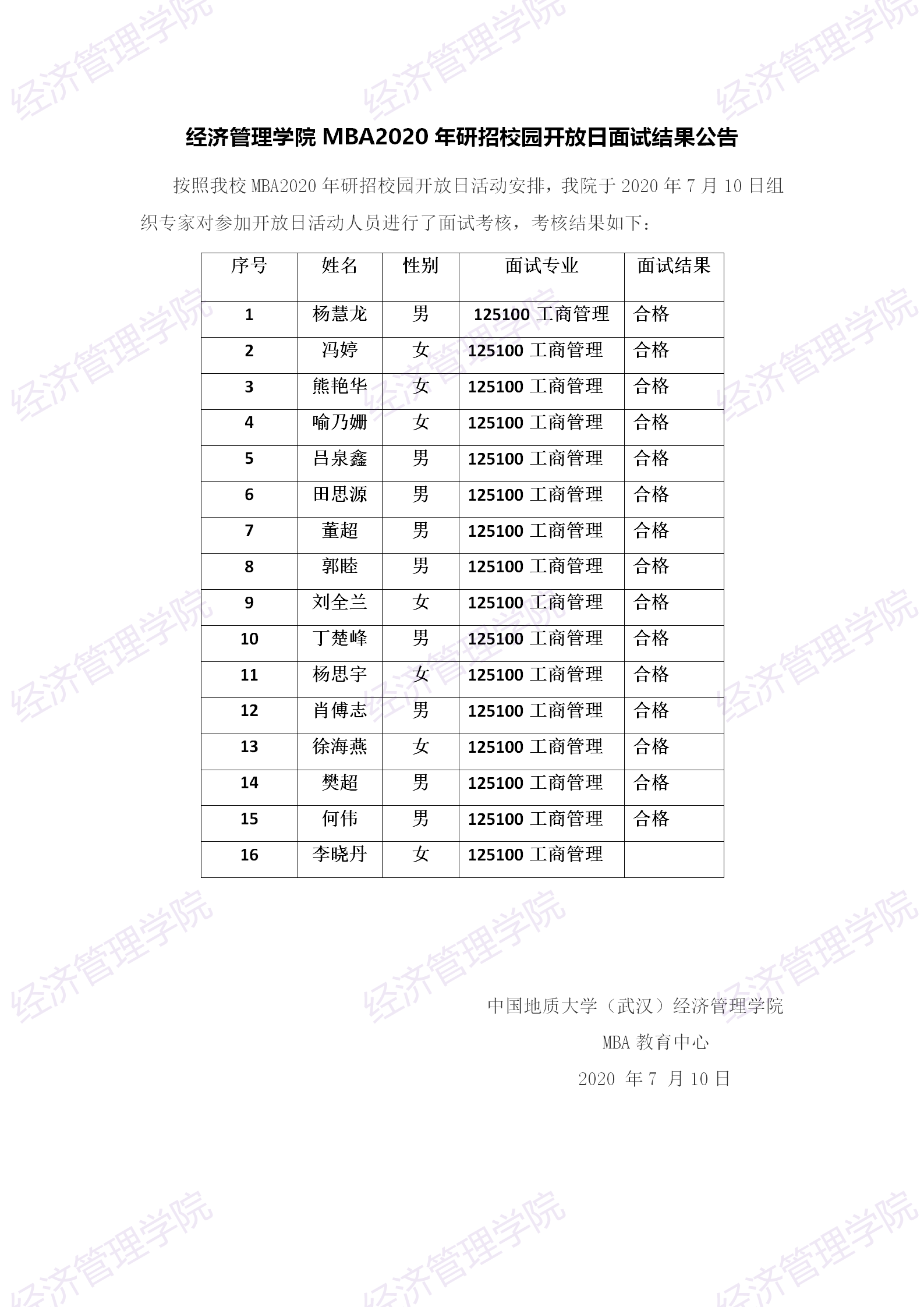 vwin德赢ac米兰官方网MBA2020年研招校园开放日面试结果公告