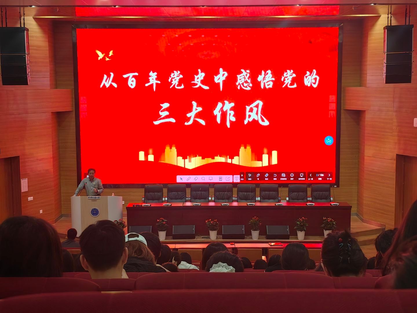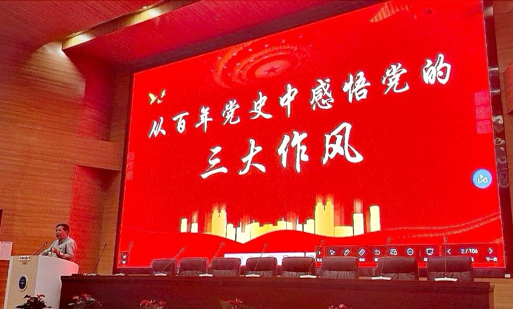 为落实深入贯彻中央八项规定精神学习教育,巩固深化主题教育和党纪学习教育成果、纵深推进全面从严治党,2025年4月10日下午,学院开展经品党建论坛活动,由学院党委书记杨昌锐为学生党员、发展对象、入党积极分子讲授“从百年党史中感悟党的三大作风”主题党课,学院党建辅导员蔡杨主持本次活动。