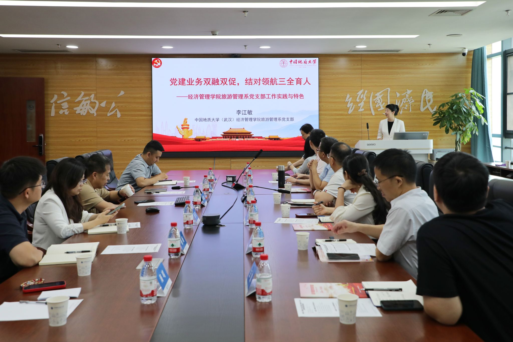 随后,我院旅游管理系党支部书记李江敏教授作《党建业务双融双促,结对领航三全育人——vwin德赢ac米兰官方网旅游管理系党支部工作实践与特色》专题分享,结合党支部书记“强国行”实践经历,详细阐述了党支部在党建与业务融合、结对育人等方面的工作经验和特色做法。
