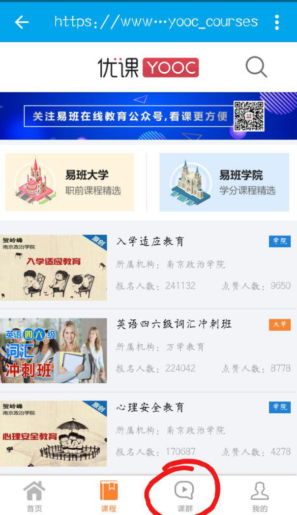 第二步:点击右下角的课群(如下图)
