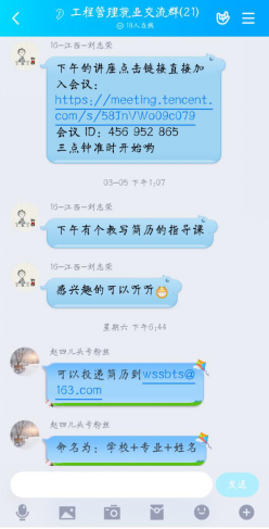 聚焦大四年级同学的就业问题。党支部积极与学院毕业生委员会对接,了解本专业大四同学就业的最新动向。工程管理专业共有60名2020届毕业生,其中10位保研,2位拿到境外学校offer,28位拿到企事业单位offer或已签三方协议,5位准备考研复试,1位准备考研二战,14位正在投递简历或面试中。支部建立《就业帮扶方案》,力争“一人一策”,积极组织已就业的党员和入党积极分子为尚未就业同学提供就业指导,通过建立专业就业信息交流群和校友联系群,及时分享各类对口企业的招聘信息、线上双选会和宣讲会信息,动员未就业同学广泛投递简历,参加求职技巧培训课程等,提高就业能力。目前未就业同学均已参加学校10号举行的线上大型双选会,均已通过简历筛选环节,正积极准备线上面试,后续党支部将持续帮扶跟进。