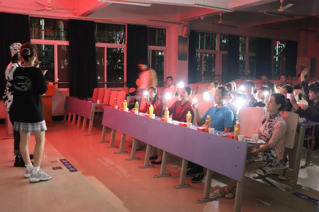四位老师全程参与了班级的晚会活动。活动开始,旅游管理系党支部书记李江敏老师和旅游管理系系主任肖拥军老师先后为班庆活动致辞,表达了对同学们的节日问侯和大学新生活的祝福。让同学们感到了家一般的温暖,也让同学们对未来地大新生活充满期待。活动中,老师们欣赏同学们的才艺,点赞同学们的表演,为同学们的青春活力喝彩,与同学们共同参与游戏,和同学们一起品尝月饼,让同学们倍感亲近。活动临近尾声,肖拥军老师与同学们共同唱响《今天是你的生日》,为共和国71岁生日送上了属于地大师生的祝福。