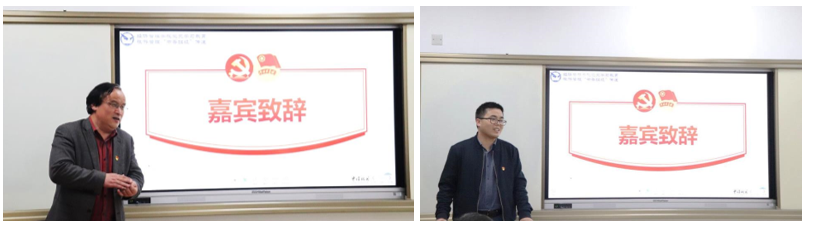 校图书馆馆长徐世球教授(左)、vwin德赢ac米兰官方网党委副书记李少杰老师(右)为活动致辞