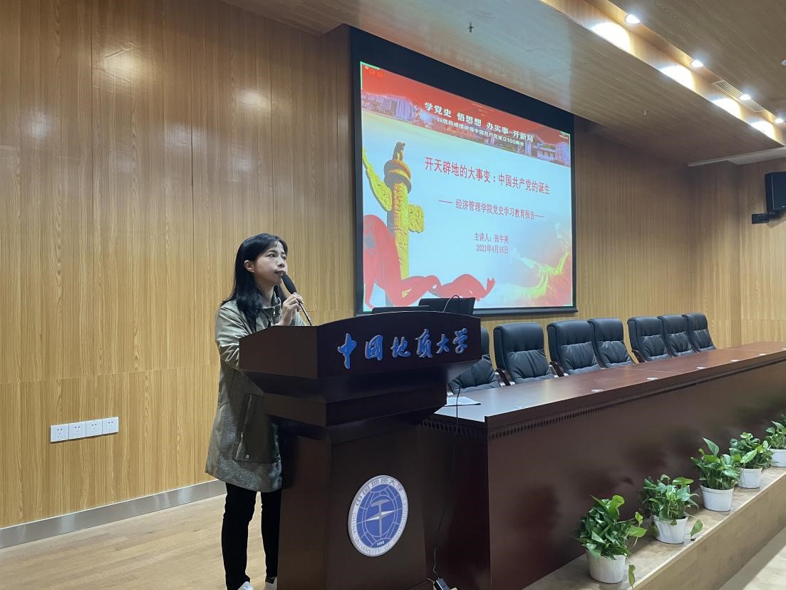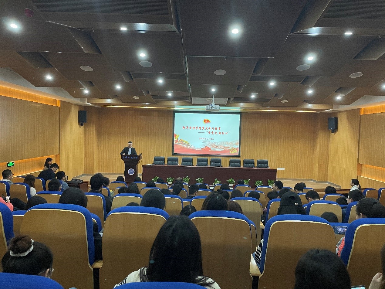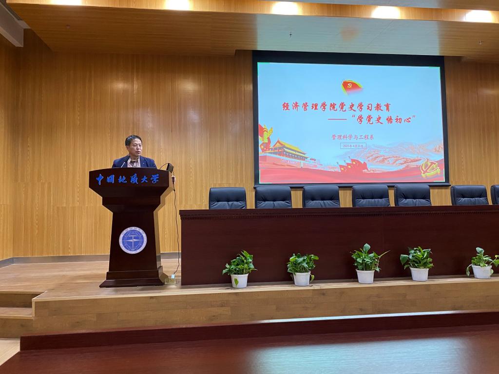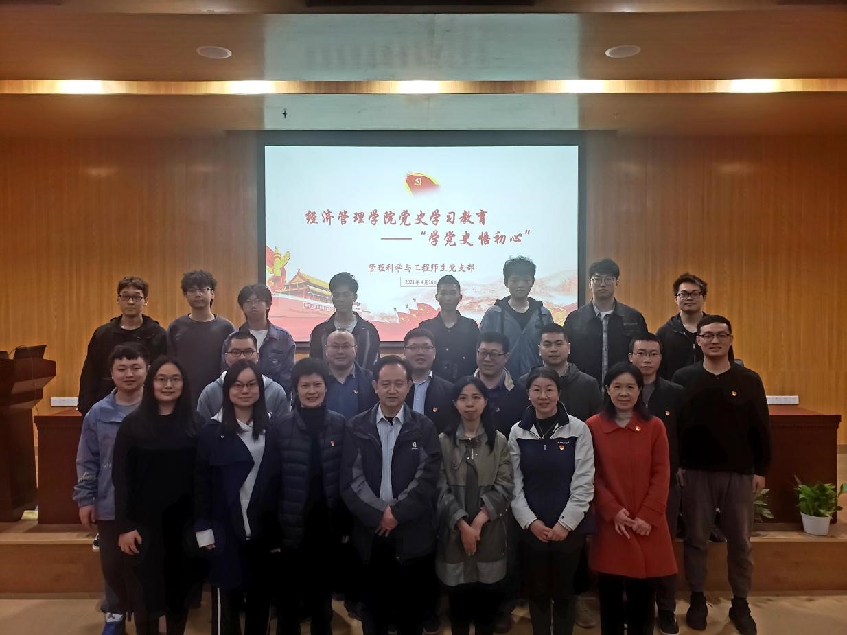 (通讯员:倪兴华)为深入贯彻落实党中央要求,迎接中国共产党成立一百周年,4月16日上午,vwin德赢ac米兰官方网管理科学与工程系师生党支部在未来城校区经管楼一楼报告厅,组织开展“学党史、悟初心”党史学习教育活动。学院党委书记杨昌锐,副院长王广民,老党员帅传敏教授,以及管科系师生党支部100余名师生参加。我校马克思主义学院党史讲课团成员张牛美博士应邀作专题报告。管理科学与工程系教职工党支部书记孙涵主持报告会。
