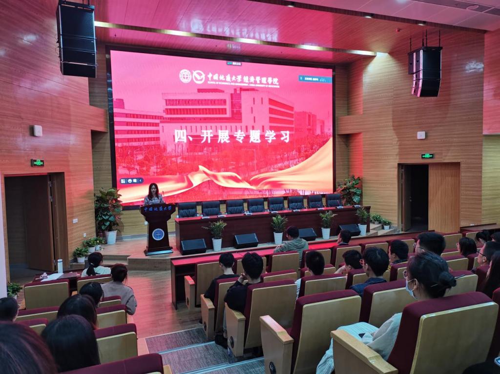 学党史,促进学生党建工作提质增效。会计学专业本科生2017级学生党员周雨晴以《新时代党的组织工作》为题主讲专题党课。党课领学了习近平总书记习近平在全国组织工作会议上的讲话,围绕新时代党的建设、组织路线、组织体系、党的基层组织建设等重要内容进行了细致讲解;党课同时突出党史学习教育的主题主线,回顾了中国共产党成立100年来党的基层组织建设取得的重大进展、显著成就和重要经验,并结合学生党支部作用发挥和实际工作,提出加强组织力、强化规范性、抓好经常性教育和集中性教育的工作思路;党课更以适应“新形势新任务新要求”为导向,带领全体学生党员、团员认真学习新修订的《中国共产党普通高等学校基层组织工作条例》,并对照文件要求、结合支部实际,提出促进学生党支部工作提质增效的改进措施。
