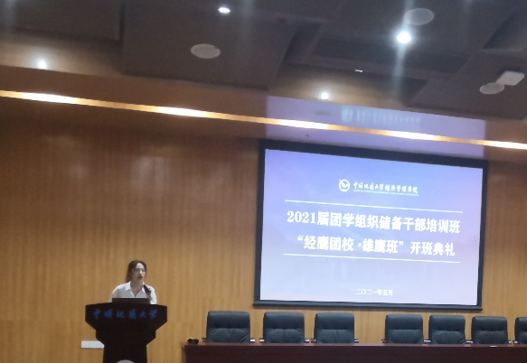 第二环节是主席团成员郑雯琪进行团学组织部门介绍。首先,郑雯琪强调了经管学生会是在经管团委的指导下开展工作,大一年级工作组和学生干部储备班为经管团学组织输送人才。其次,郑雯琪依次介绍了经管团学组织各部门的组织架构和部门职能。最后,郑雯琪建议同学们根据自身竞选意向,结合CUG经管新生代的多彩院会推文来加深对经管团学组织的了解。