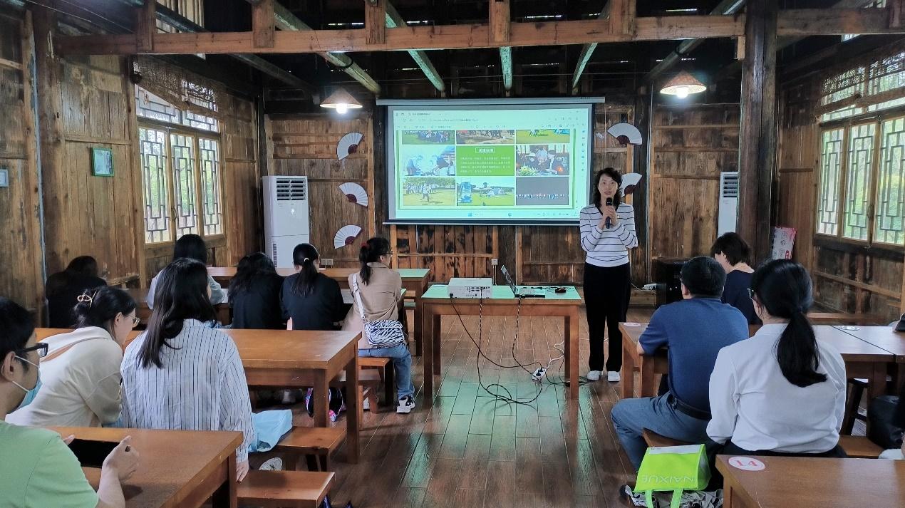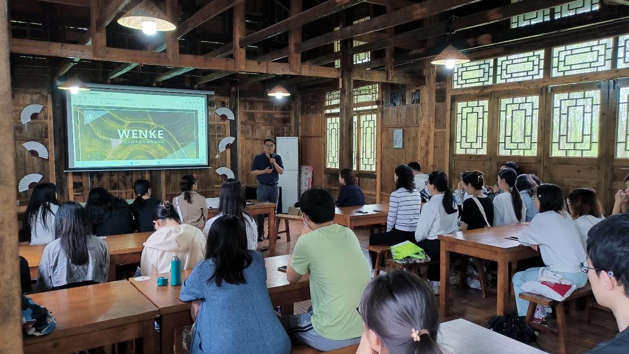 全国特级导游,师资中心经理谷音,向同学们介绍了武汉文科生态环境有限公司、武汉学知悟达旅行社有限公司及光谷有田劳动教育基地,也向同学们介绍了研学旅游的发展历程和前景。她用从“萌新”成长为“特级导游”的自身经历,讲述着对导游行业的执着和热爱,同时也言传身教,鼓励同学们一定要找准人生坐标,学好专业知识,成就最好的自己。