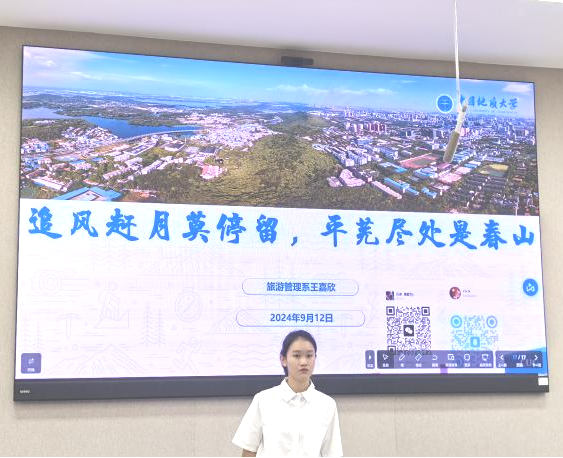 旅游管理专业2021级学生田林、王嘉欣就如何平衡学习与实践、参与科研项目、以及准备未来的职业生涯等话题进行了深入的探讨和分享,她们鼓励学弟学妹们积极参与到各种实践活动中,通过实践提升自己的专业技能和综合素质。肖拥军老师对如何规划新学期、如何利用学校资源等提出了建议。
