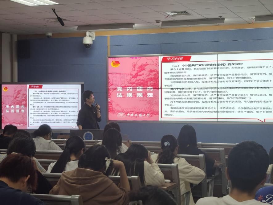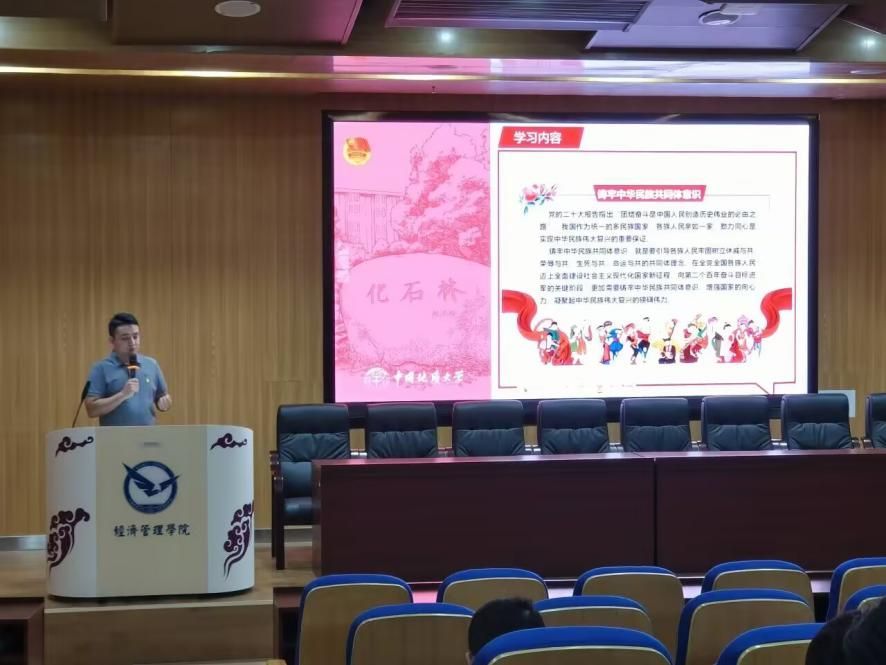 9月23日,学院学生分团委副书记谢琨淮与刘箬缇共同组织081221、086221及2023级学硕管理科学与工程团支部联合开展主题团日活动。刘箬缇主持本次活动,讲述了自己学习党的二十届三中全会精神的理解,鼓励同学们刻苦学习,培养扎实的专业技能,勇立时代潮头。谢琨淮详细介绍了我国有关民族、宗教的法规,结合党纪团规校纪引导同学们树立正确的民族观和宗教观,增强对中华民族共同体的认同,为促进民族团结及国家统一大业作出贡献。