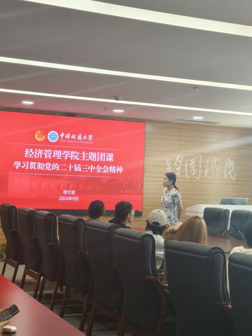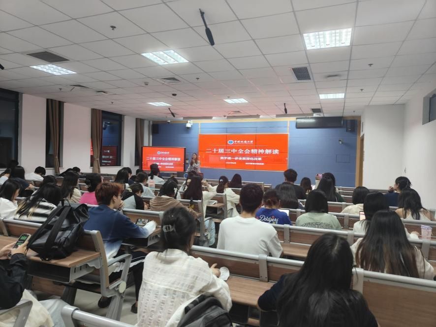 9月21日和24日,学院研究生辅导员陈静老师分别向2022级专硕应用统计团支部和学院研究生会团支部开展了“深入学习贯彻党的二十届三中全会精神”的主题宣讲活动。在该活动中,陈静老师紧密围绕习近平总书记在党的二十届三中全会上的重要讲话精神,以及《中共中央关于进一步全面深化改革、推进中国式现代化的决定》中的重要指示,从全会的历史背景、精神实质以及重要成果进行了深入浅出、条理分明、形象具体的解读。她指导同学们提高政治觉悟,树牢“四个意识”,坚定“四个自信”。在活动结束时,陈静老师激励同学们将会议精神内化于心、外化于行,以实际行动投身于国家建设的伟大事业中。