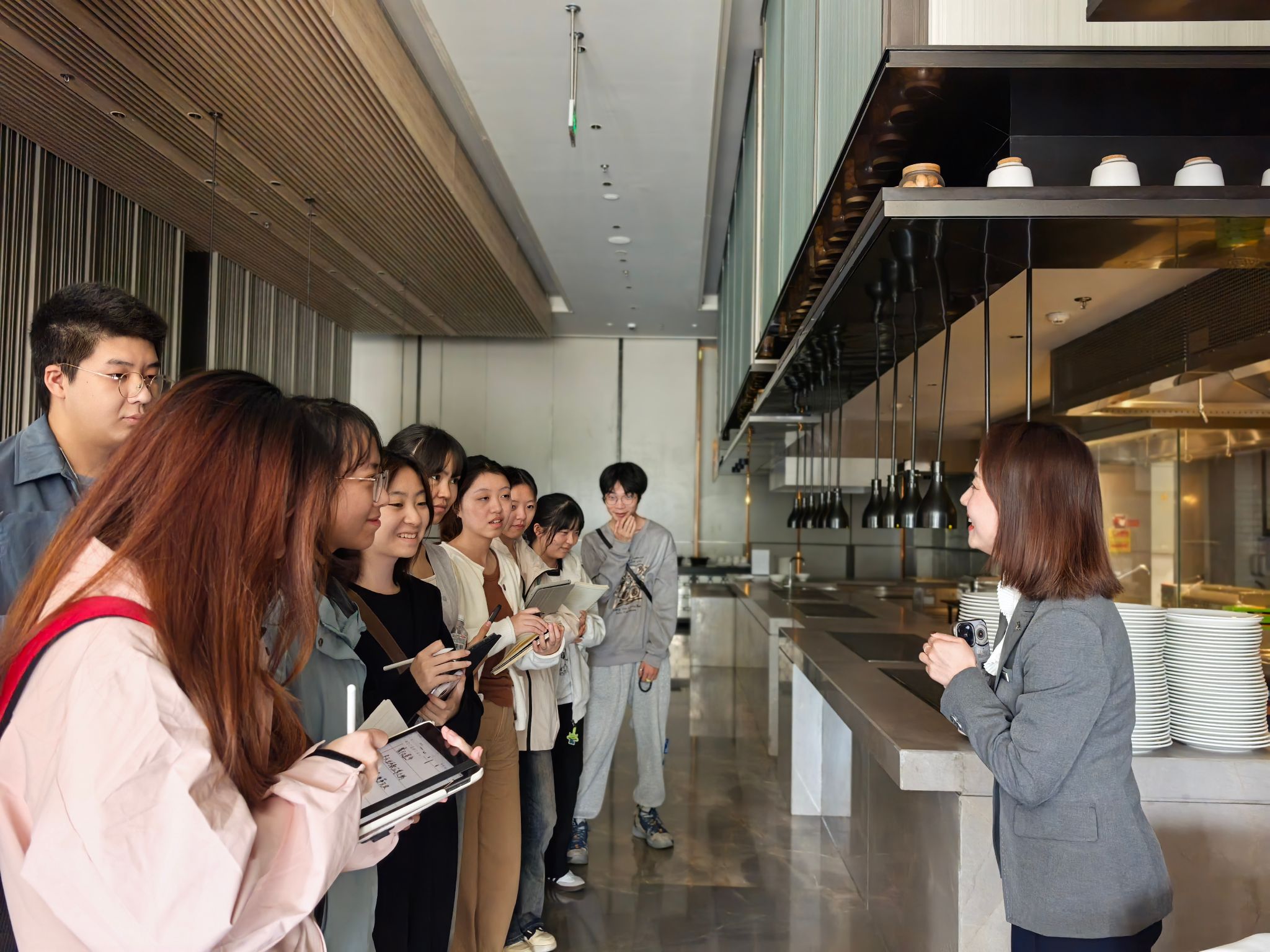 同学们在认真倾听的同时,积极提问互动。蔡总与管理团队成员耐心地解答了同学们关于酒店的竞争优势与未来发展制约因素、差异化发展策略与人才支持体系、员工招聘与福利待遇等当下较关心的问题。
