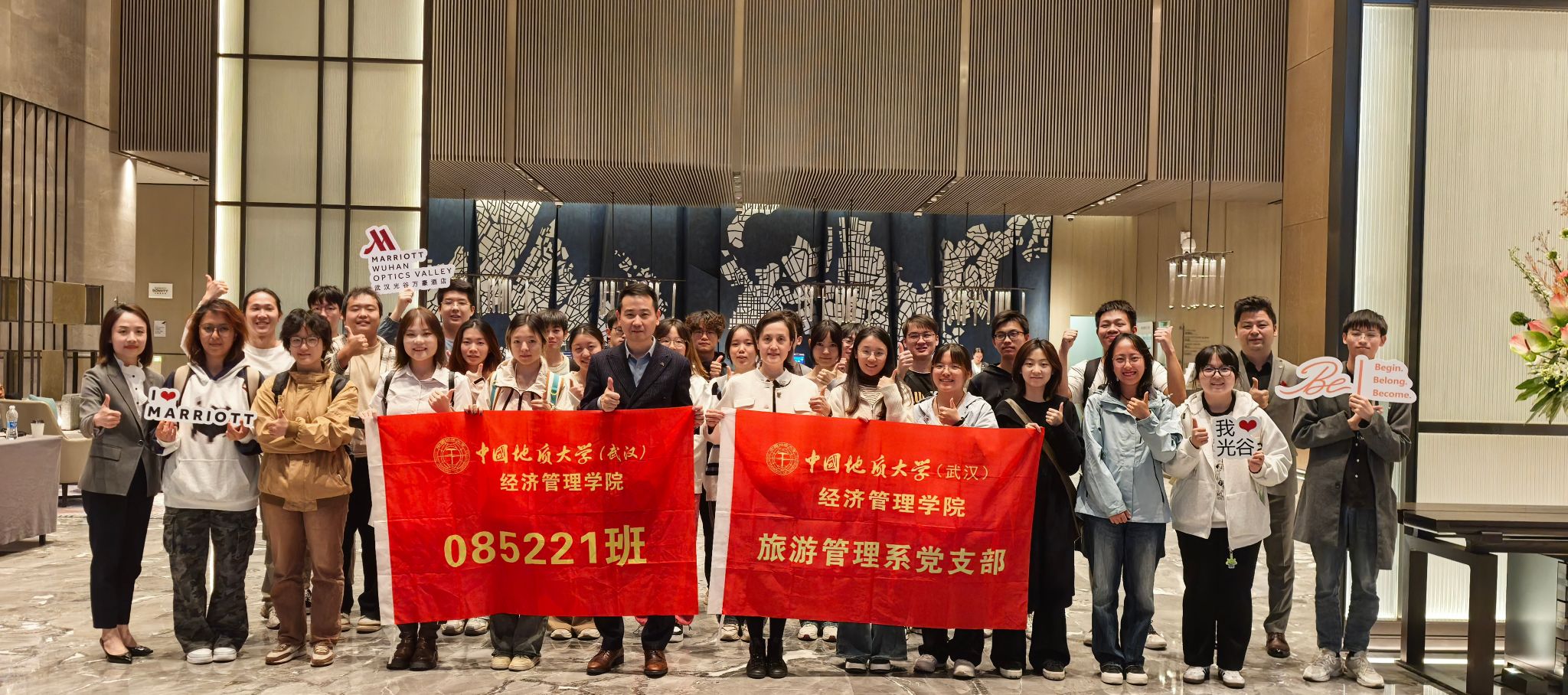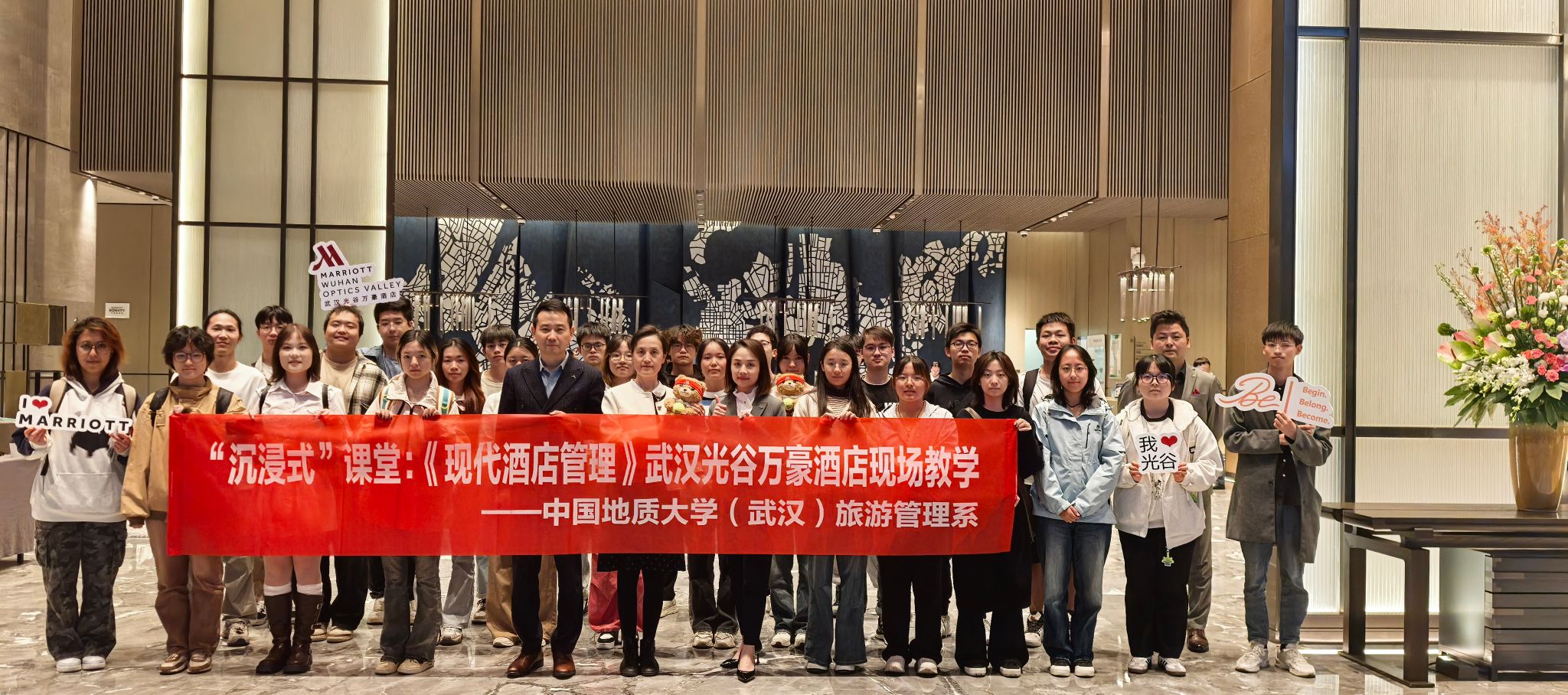 旅游管理系高度重视此次活动。支部书记李江敏教授、系主任李会琴教授与武汉光谷万豪酒店总经理蔡戍先生及管理团队细致沟通,为同学们的“沉浸式”课堂设置了企业文化展示、采访发布与职业规划(vwin德赢ac米兰官方网专场)、酒店环境设施参观等特色交流环节。