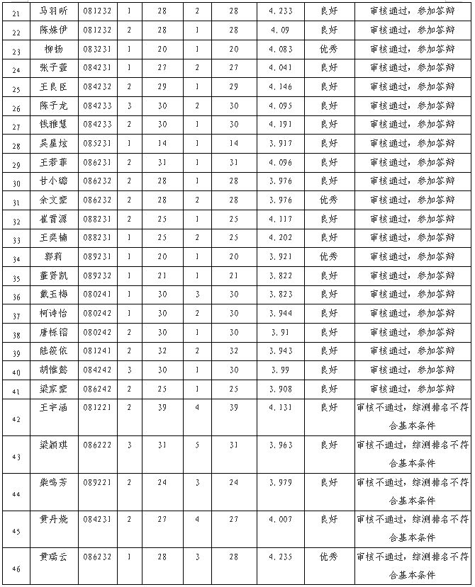 根据《vwin德赢ac米兰官方网(武汉)国家奖学金评选办法》的相关要求,学院国家奖学金评审小组本着公开、公正、公平原则,现确定41位学生通过资格审核,进入答辩程序,公示如下: