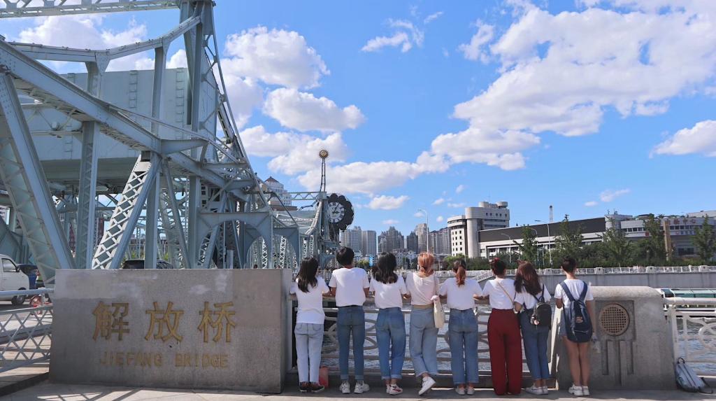 离开烈士陵园,天津分队最后一站来到了平津战役中人民解放军胜利会师的解放桥下,解放桥曾是海河上造价最为昂贵的一座桥,也叫金汤桥在平津战役中,人民解放军只用了不足1个连的兵力,东西夹击,击溃了人数众多、武器先进的国民党守军,占领了解放,在此欢呼革命的胜利我们站上桥瞻仰,学习它的历史,仿佛与解放一同看到了中国人民解放军神勇,也似乎与解放桥共同见证了平津战役在战争史上的奇迹。