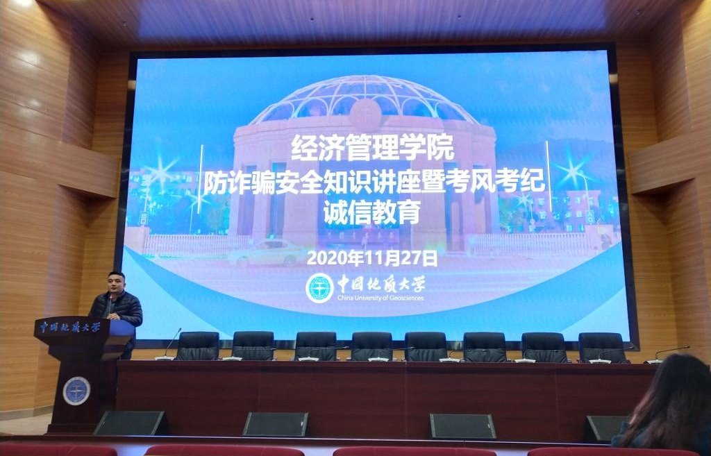 (通讯员:周雨婷/王梦思)2020年11月27日晚,vwin德赢ac米兰官方网防诈骗安全知识讲座暨考风考纪诚信教育活动在经管学院二楼报告厅顺利开展,由学工组辅导员努尔夏提·居勒提老师主持,工商大类A2018、2019级全体学生线下参会,其他各系各年级学生线上自行学习和交流。