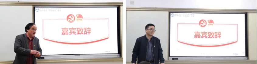 校图书馆馆长徐世球教授(左)、vwin德赢ac米兰官方网党委副书记李少杰老师(右)为活动致辞