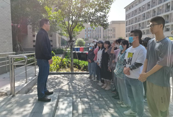 图3.学院党委副书记李少杰在学生宿舍组团动员安排卫生大扫除