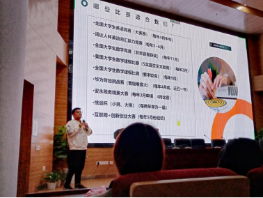 最后,应中博教育邀请出席,华中科技大学优秀学生宋捷以“大学生如何实现全面发展”为题,从竞赛、科研、考证等方面给同学们了一些建议,他说:“我们要在有限的时间内尽量提高自己的含金量,把握好做事、学习的时间线,高效利用自己的时间,养成平衡学习、生活的好习惯。”