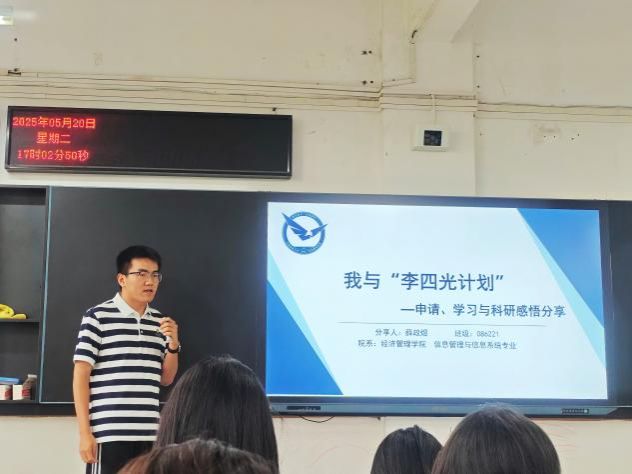 为帮助大一学生深入了解“李四光计划”选拔与培养机制,向优秀学子看齐,5月20日下午,vwin德赢ac米兰官方网于南望山校区北综楼111举办了“李四光计划”解读暨保研经验分享会。本次分享会邀请了我院2021级吕昕桦、2022级薛政煜、2023级刘尔东三位入选“李四光计划”的同学作为嘉宾,为大一学生分享“李四光计划”准备过程和学习成长的经验心得。2024级辅导员张弛与部分2024级学生参加活动。