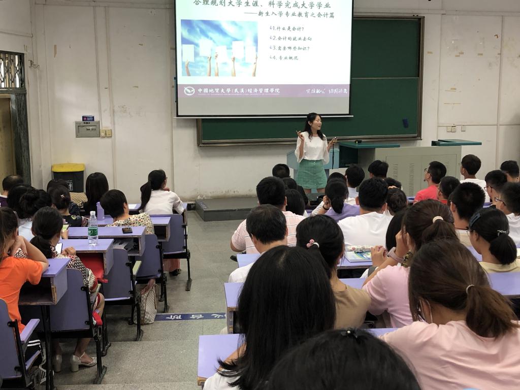 图2:会计系系主任杨洁老师主持并作专业介绍