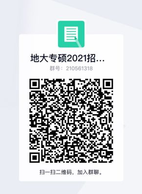 欢迎加入地大专硕2021年招生群(QQ群号:210561318)