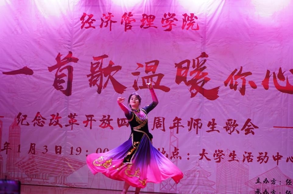 本次歌会分为“春回大地”“激情岁月”“乘风破浪”“继往开来”四个篇章,以歌曲的形式纪念了改革开放走过的极不平凡的四十年,用最温情的方式增进了师生间的感情,拉近了师生间的距离,每一首精心准备、深情演唱的歌曲都表达了经管人对党和祖国的热爱。歌会结束后,参加歌会的2017级本科生张康激动地说;“第一次看到这么多自己的老师上台表演,气氛真的很活跃。感谢这场歌会让我们多对讲台下的老师有了更多的了解,祝福学院越来越好,也祝福祖国改革开放的道路越走越宽广!”
